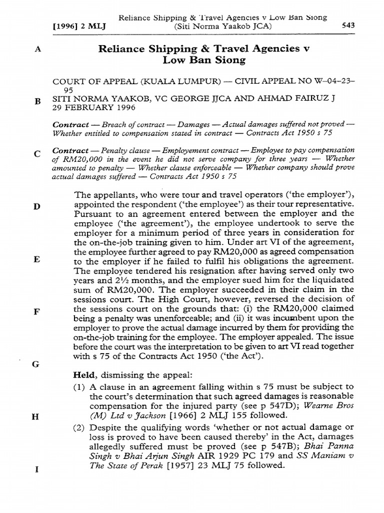 It applies to the whole of india except the state of jammu and kashmir. This act applies to all employees in malaysia and governs the relations between employers and employees (including trade unions) and the section 28 of the contracts act 1950 provides that 'every agreement by which anyone is restrained from exercising a lawful profession, trade, or. Phone up mbna now tell them the goods haven't arrived and they will tell you how best to deal with it. According to section contract act 1950, there are provisions of three (3) clauses which may be the circumstances of frustration of contract. In this article, lam mi chelle considers the rights of contractual parties to exclude the application of section 75 of the contracts act 1950 in seeking liquidated damages. The effect of section 75 is that a plaintiff or claimant is disentitled from recovering simpliciter the sum fixed in the contract. Who are competent to contract 4 laws of malaysia act 136. Standard construction contracts in malaysia issues and challenges by oon chee kheng be (civil), llb (hons), mba, clp, miem, peng liquidated damages liquidated damages in malaysia is a misnomer for, pursuant to the provisions of section 75 contracts act 1950 such. (2) in the absence of any provision to the contrary in the licence contract, the licensee may not give to a third person his agreement to perform in malaysia in respect of the invention any of the acts referred to in paragraph 1(a), and subsection 36(3). This act is administered by the ministry of business, innovation, and employment. The general position in malaysia under section 75 of the contracts act 1950 (section 75) has always been that where there is a breach of contract, an innocent party cannot recover simpliciter the sum fixed in a damages clause regardless of whether it is stipulated as a penalty or liquidated damages. Section 9(b) ca 2016 act stipulates that 'a company shall have one or more members…'. Section 75 is for goods that have arrived but aren't of suitable quality.