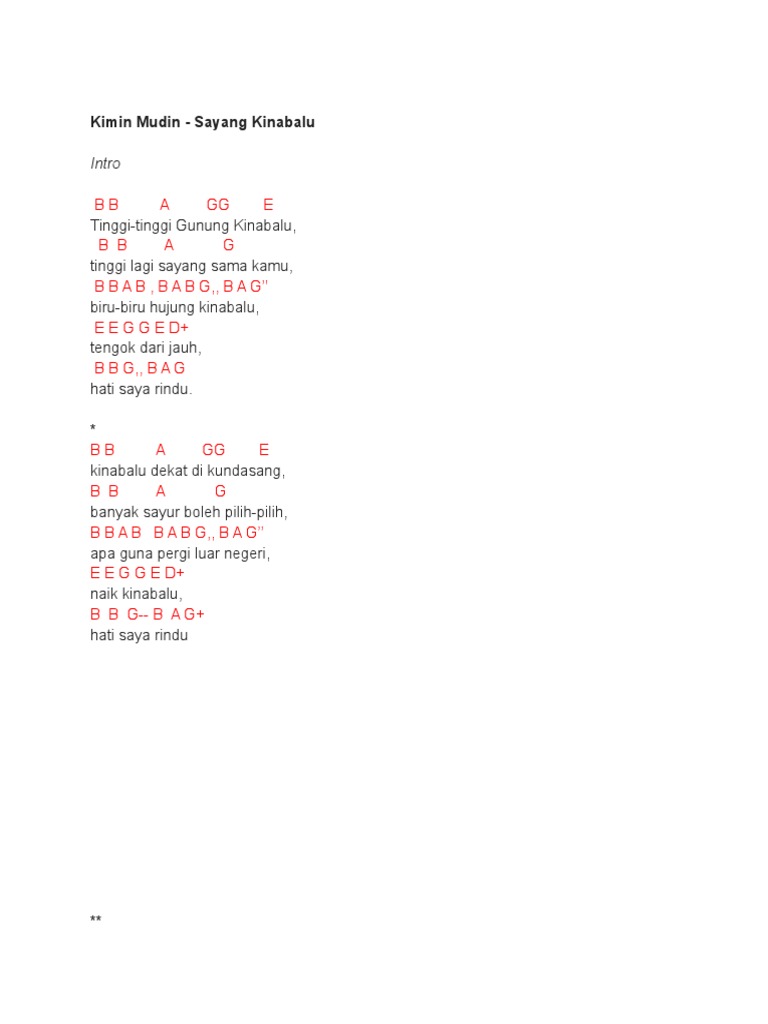 Lirik Lagu N Chord Sayang Kinabalu J3nom9x6jyld from idoc.pub Tinggi tinggi gunung kinabalu tinggi lagi sayang sama kamu biru biru hujung kinabalu. Chords for tinggi tinggi gunung kinabalu.: Meskipun tingginya melebihi kerinci dan semeru, namun track yang anda lalui tidak sesulit gunung di indonesia itu. Comment must not exceed 1000 characters. Mountain kinabalu is a mountain located at the west coast division of sabah, malaysia. F g tinggi lagi sayang sama kamu. Tinggi lagi sayang sama ?? Puncak jaya adalah gunung tertinggi di indonesia yang terletak di provinsi papua.